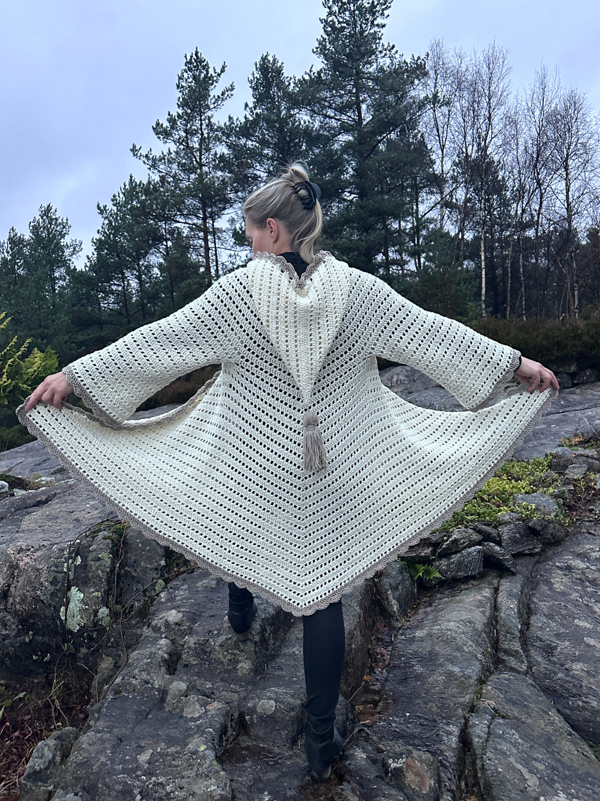 Kåpen består av mange ulike mønstermasker, noe som gjør prosjektet spennende hele veien. Hver del av oppskriften gir nye teknikker å utforske – samtidig som den er godt forklart med både tekst og bilder, slik at du alltid har en trygg veiledning.