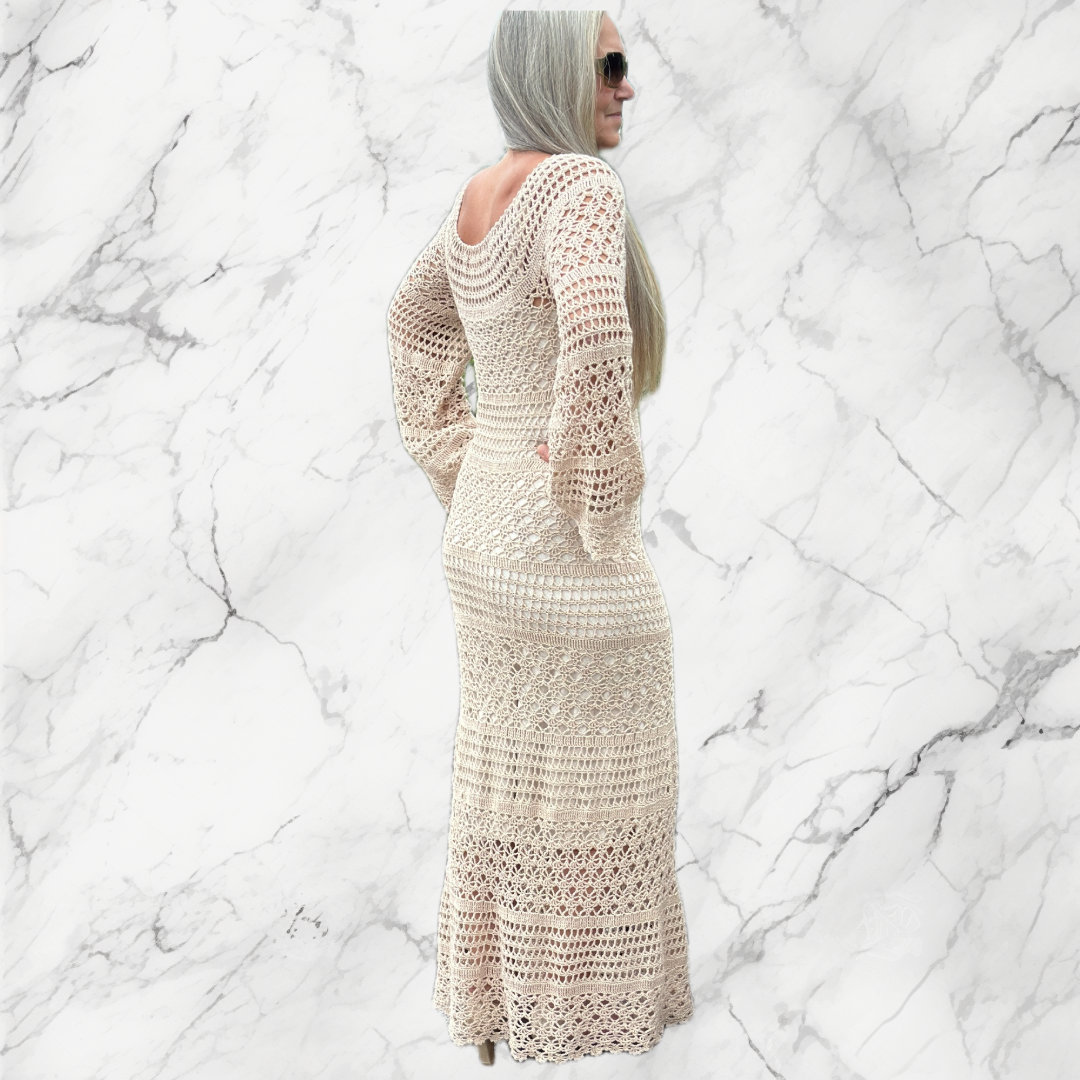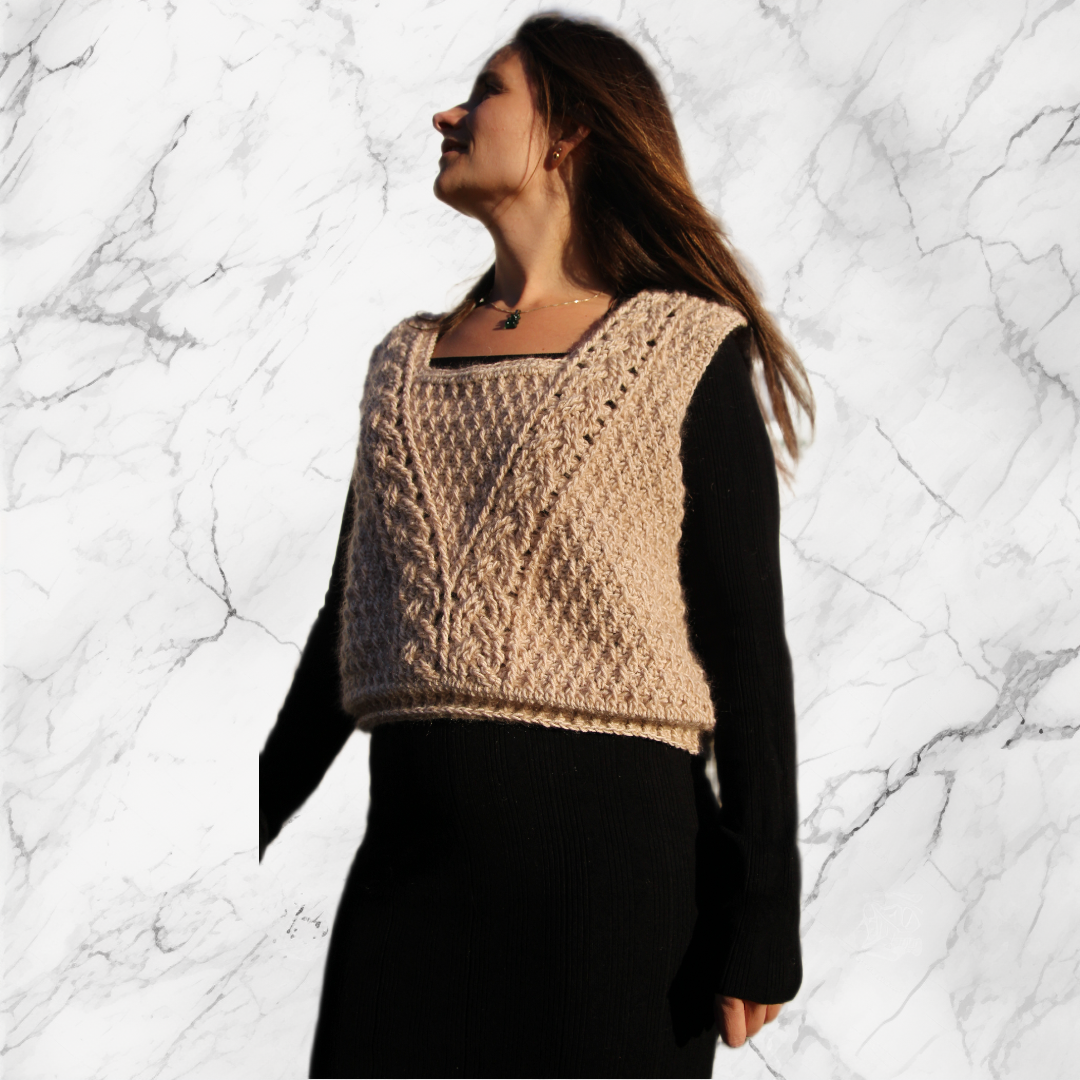 Louise genser er et elegant plagg med lekre bølgemønstre og vid passform. Den kombinerer luftige hekleteknikker med mykt garn, og gir en genser som føles lett, men samtidig varm og behagelig å bruke.