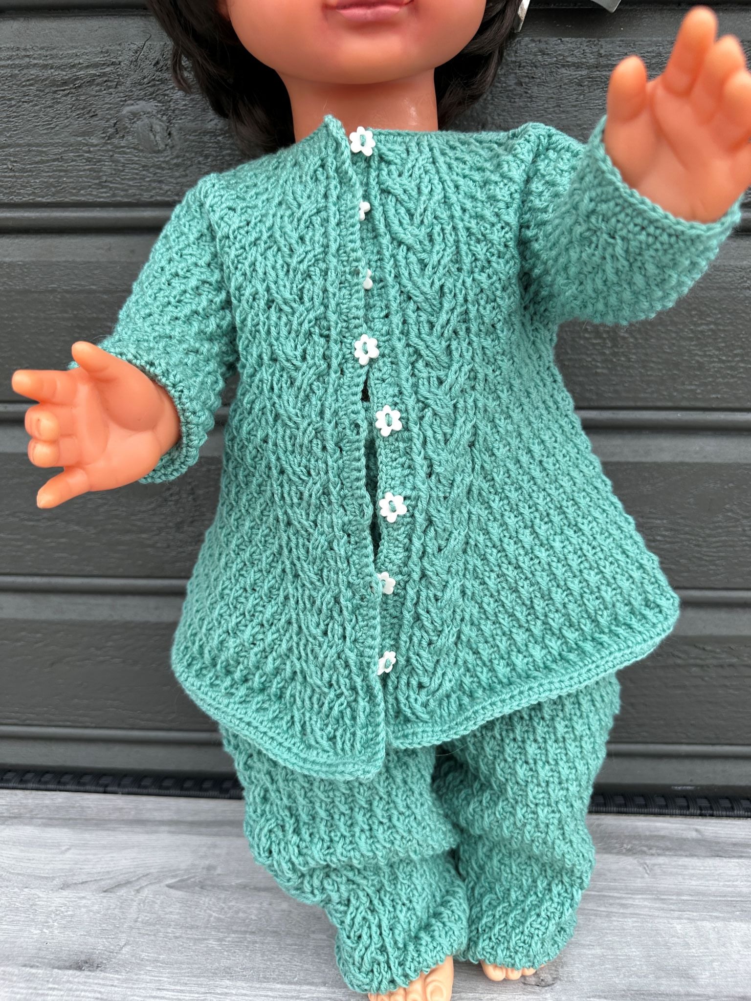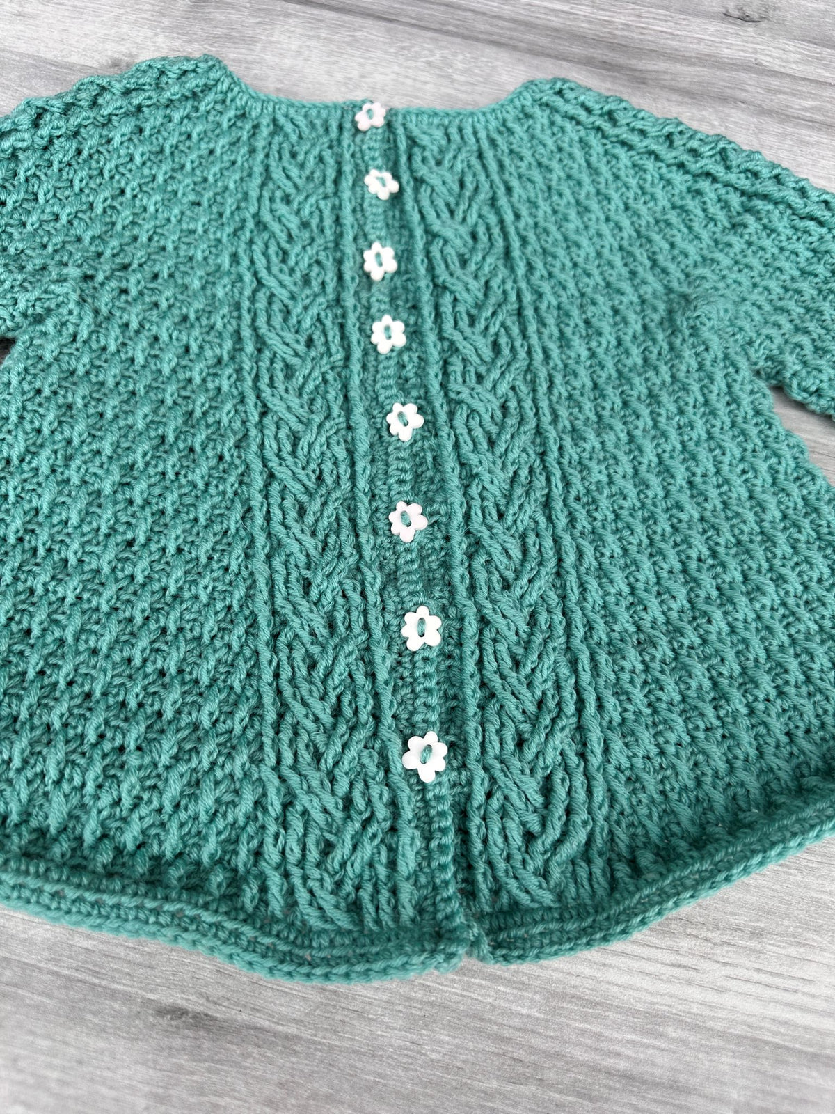 En nydelig babyjakke i Myrkdalen-serien, heklet med dekorative fletter og relieffstaver. Denne varme og behagelige jakken er perfekt for de minste og gir god komfort på kjølige dager.