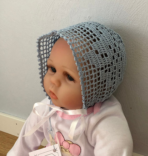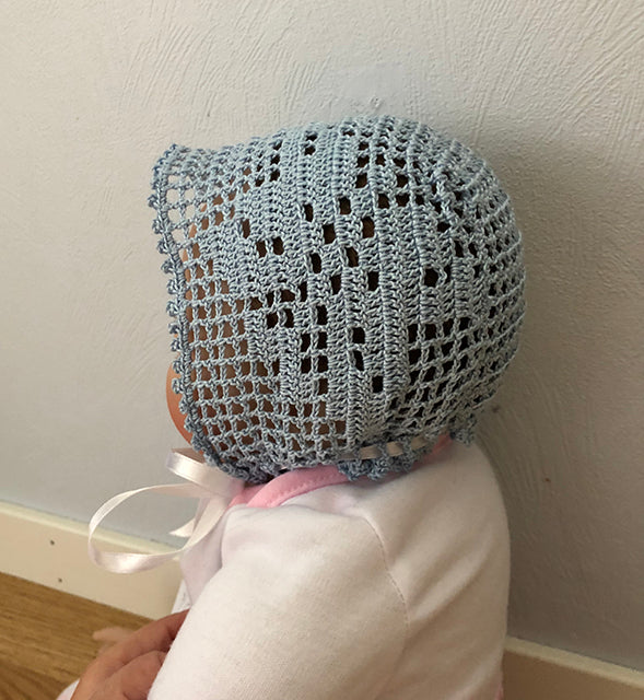 Ferdig heklet Dåpslue – Lys blå (3–6 mnd)